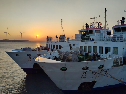 在返程的轮渡上,也是看海的绝佳机位。此时正值日落,站在船舷上吹着海风,看着远处的夕阳慢慢落下,白色的波浪、金色的海面、迎面的轮船扑面而来。耳旁的欢声笑语带走了一天的疲惫,南日岛的旅程在夜色中完美落幕。